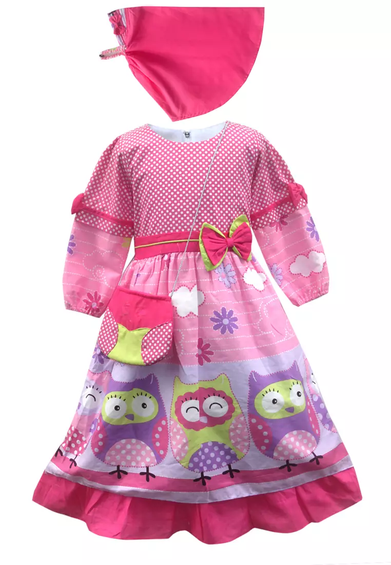 Two Mix Gamis Anak Perempuan Motif Owl Bahan Katun Usia 1-8 tahun 4109