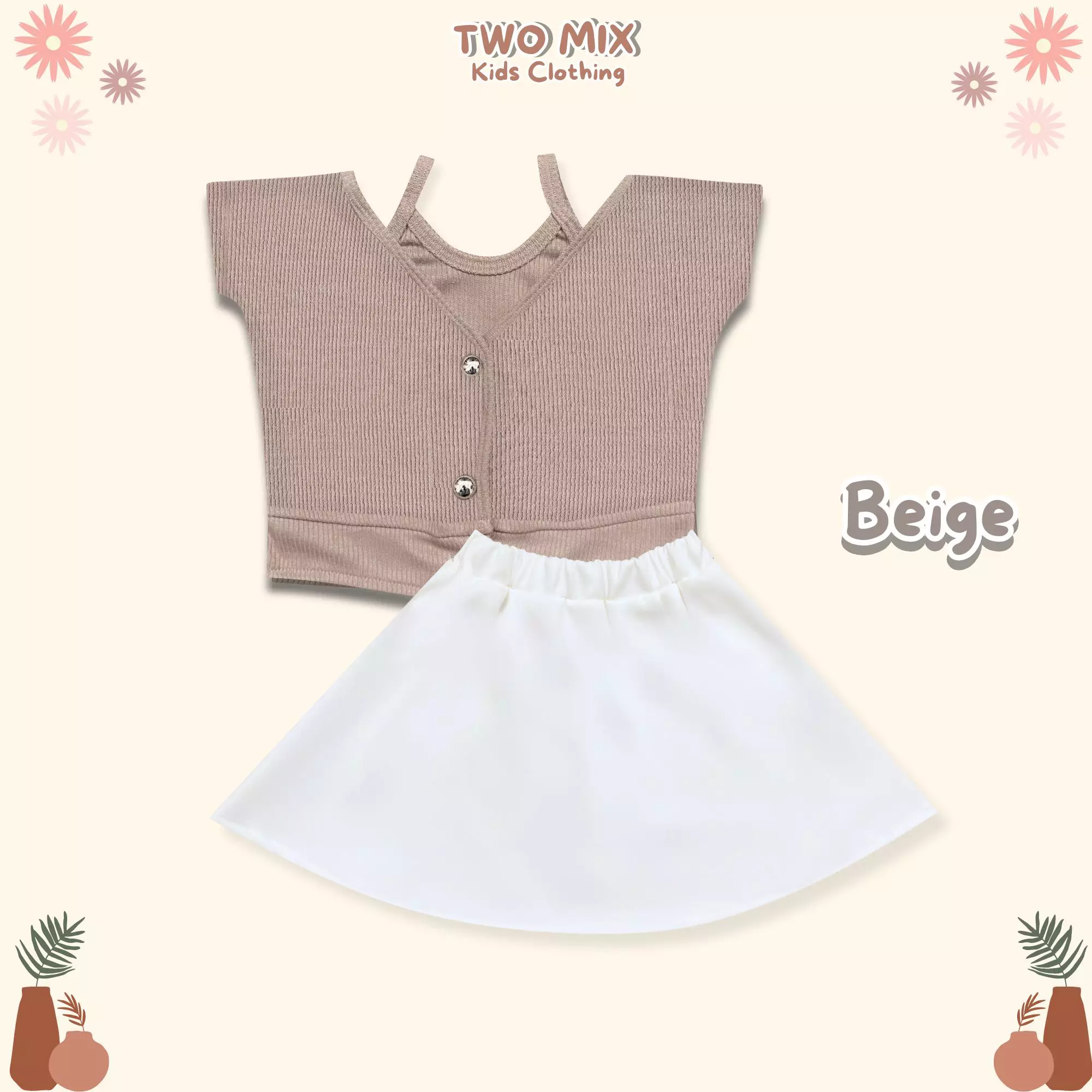 Two Mix - Haru Set Setelan Baju Rok Anak Perempuan Lucu Lebaran 1-6 Tahun 4419 Warna Beige