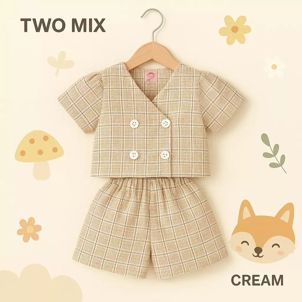 Two Mix - Hera Set Setelan Baju Anak Perempuan Lucu 1-8 Tahun 4401 Cream