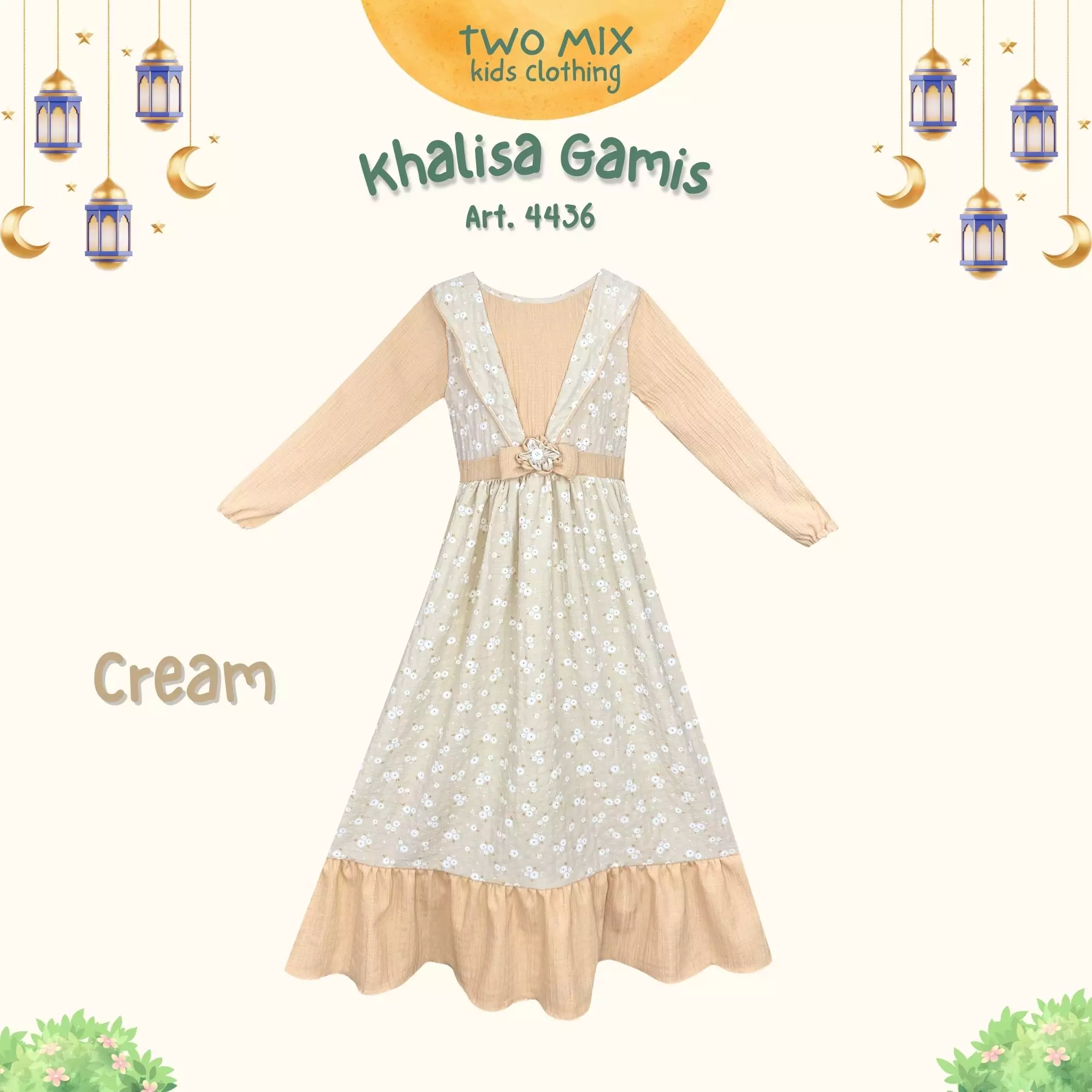 Two Mix - Khalisa Baju Gamis Anak Muslim Perempuan Lebaran 1-14 Tahun 4436 Warna Cream
