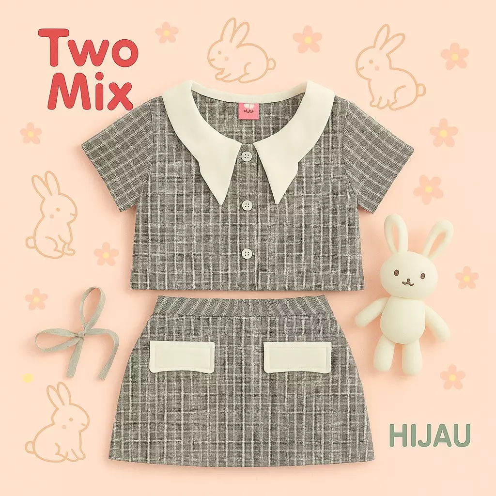 TWO MIXTwo Mix - Mariposa Set Setelan Baju Anak Perempuan Korean Style 1-12 Tahun 4402 Hijau300000.00125000.00