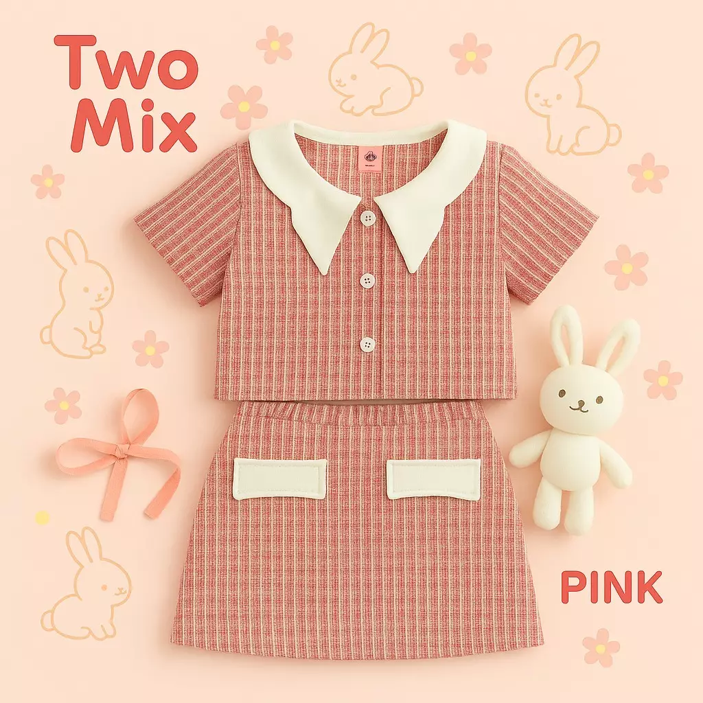 Two Mix - Mariposa Set Setelan Baju Anak Perempuan Korean Style 1-12 Tahun 4402 Pink