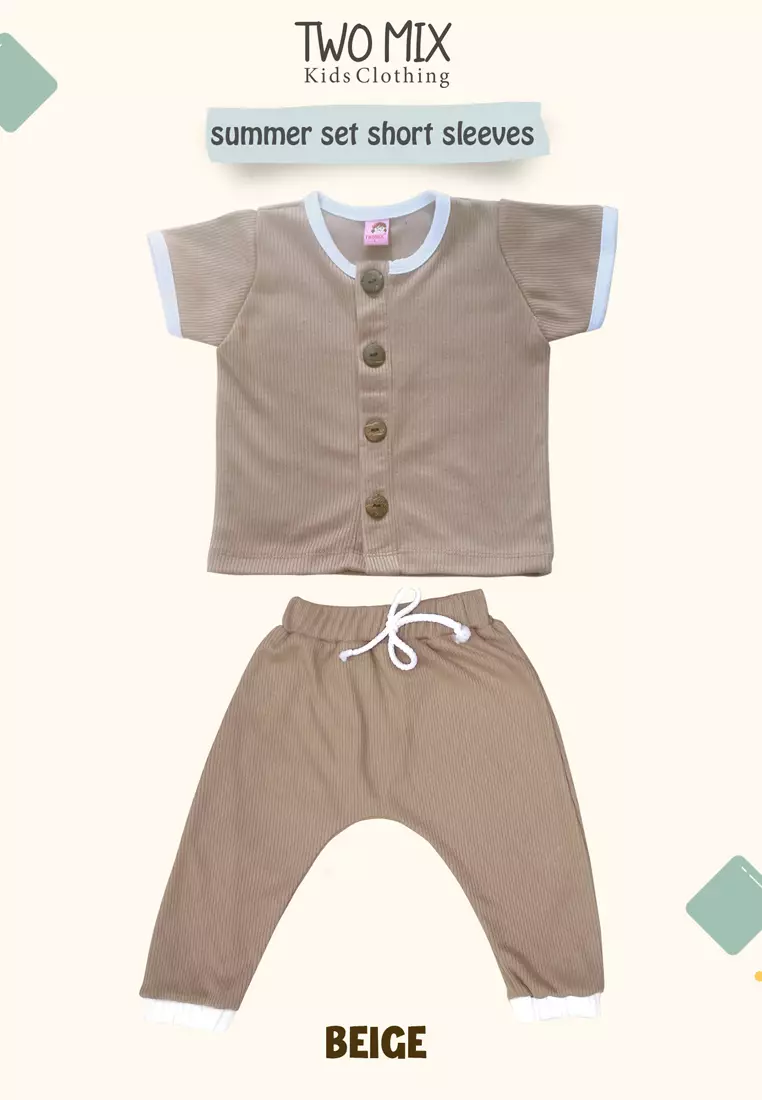 Two Mix - One Set Outfit Setelan Baju Bayi Anak Laki-Laki / Perempuan Celana Panjang 0 6 12 Bulan - 1 2 Tahun 4360B Beige