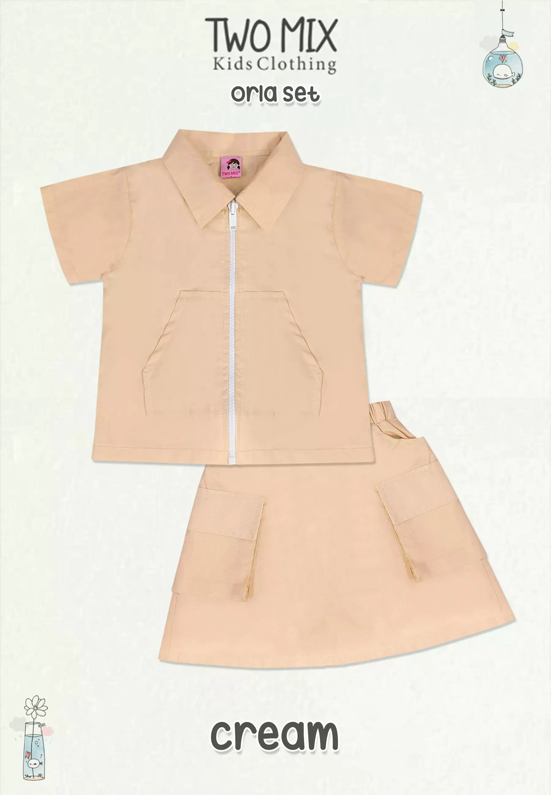 Two Mix - Oria Set Baju Setelan Anak Perempuan Lucu Katun 1-12 Tahun 4393 Cream