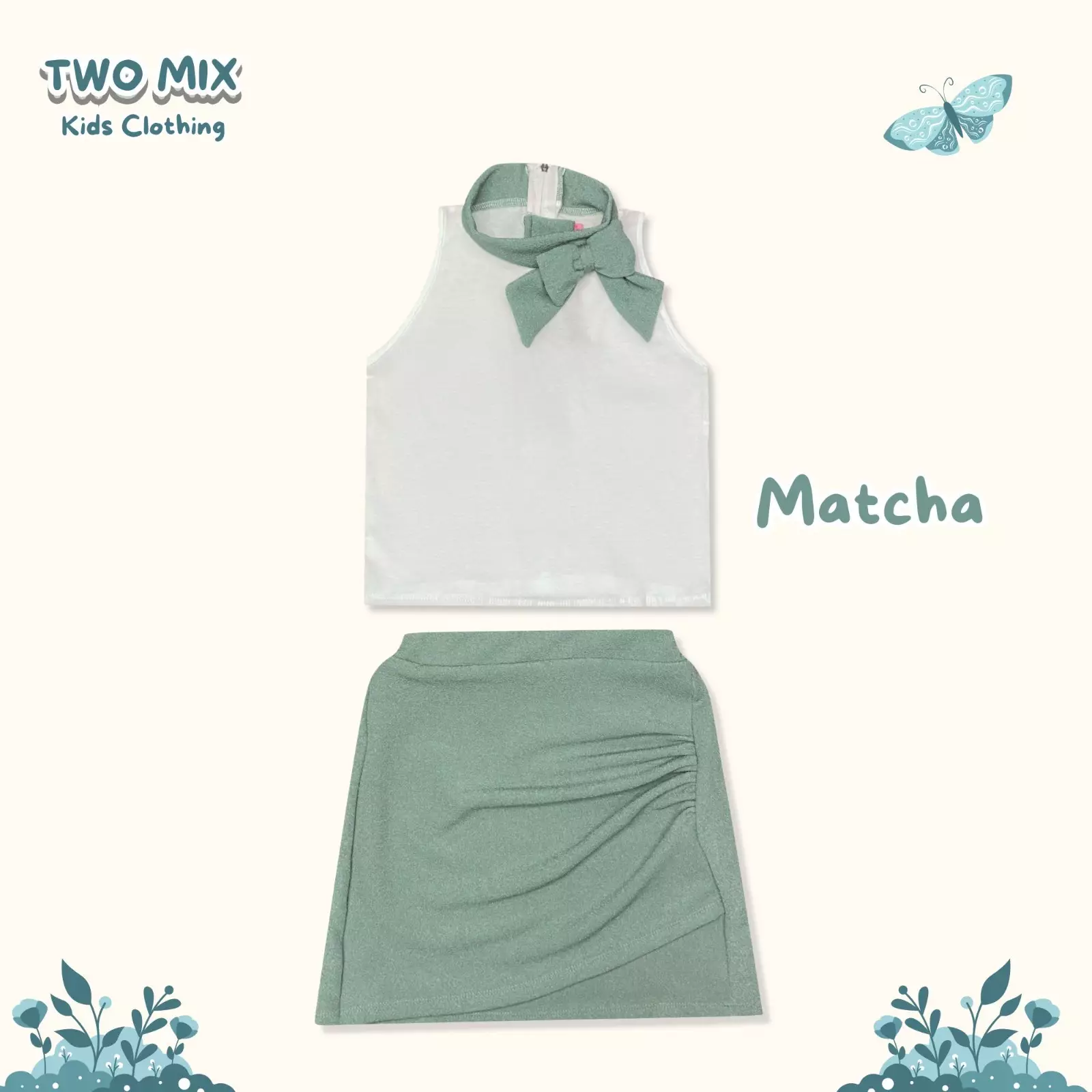 Two Mix Paula Set Setelan Anak Perempuan Santai Lebaran 2025 1-6 Tahun 4417 Matcha