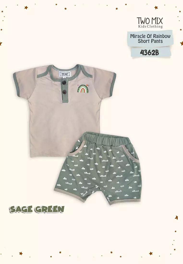 TWO MIXTwo Mix - Set Baju Bayi Kaos - Setelan Baby Celana Pendek 0 - 2 Tahun 4362B Sage Green Pendek300000.00111500.00