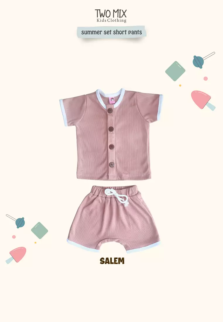 Two Mix - Setelan Baju Anak Lengan Pendek Perempuan / Laki-Laki - 0-2 Tahun 4360C Salem