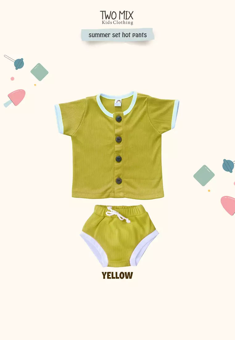 TWO MIXTwo Mix - Setelan Baju Anak Lengan Pendek Perempuan / Laki-Laki - Stelan Anak Unisex - Summer Set Hot Pants 0-2 Tahun 4360D Yellow150000.0065000.00
