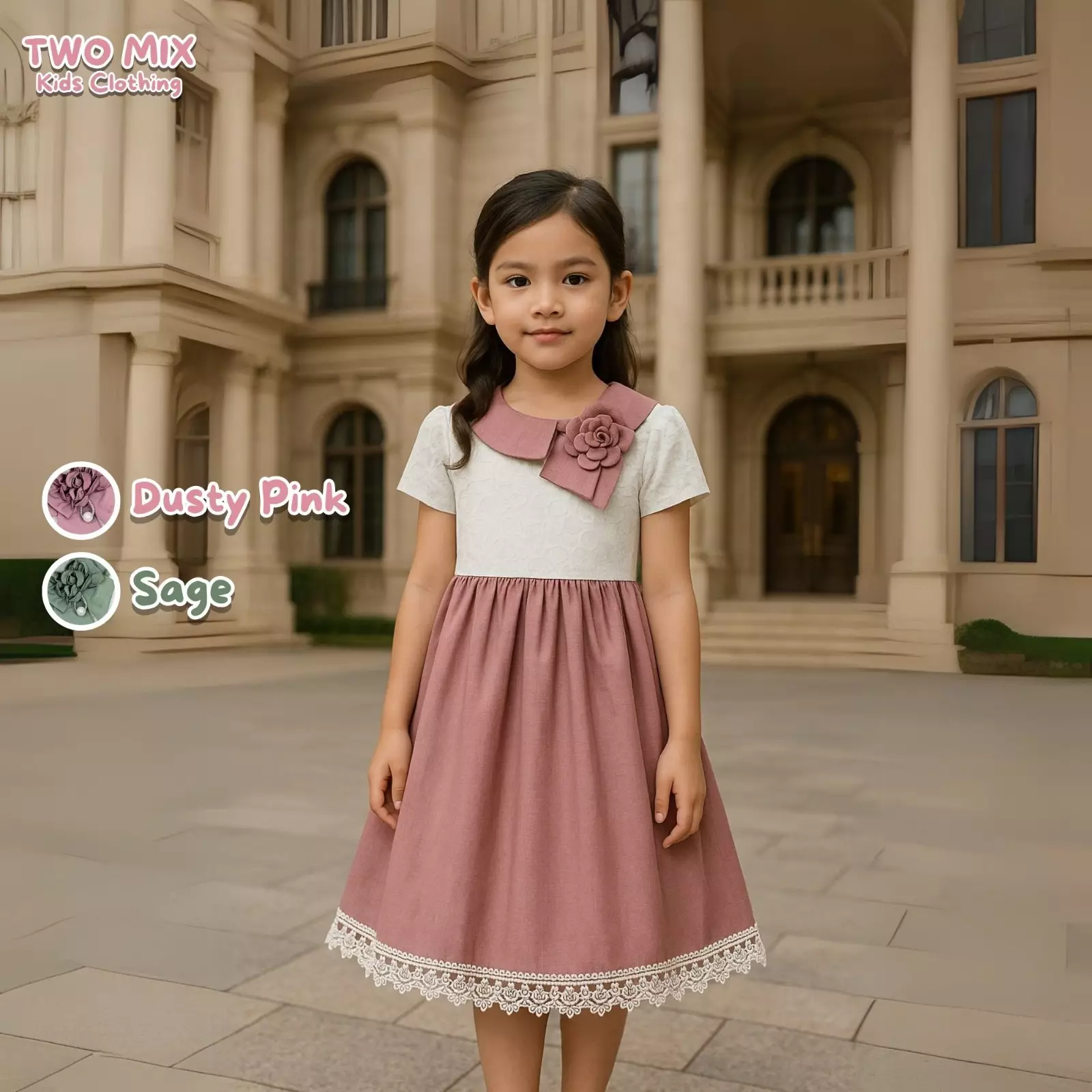 Two Mix - Sherly Dress Anak Cewek Gaun Lebaran 2025 1-12 Tahun 4434 Dusty Pink