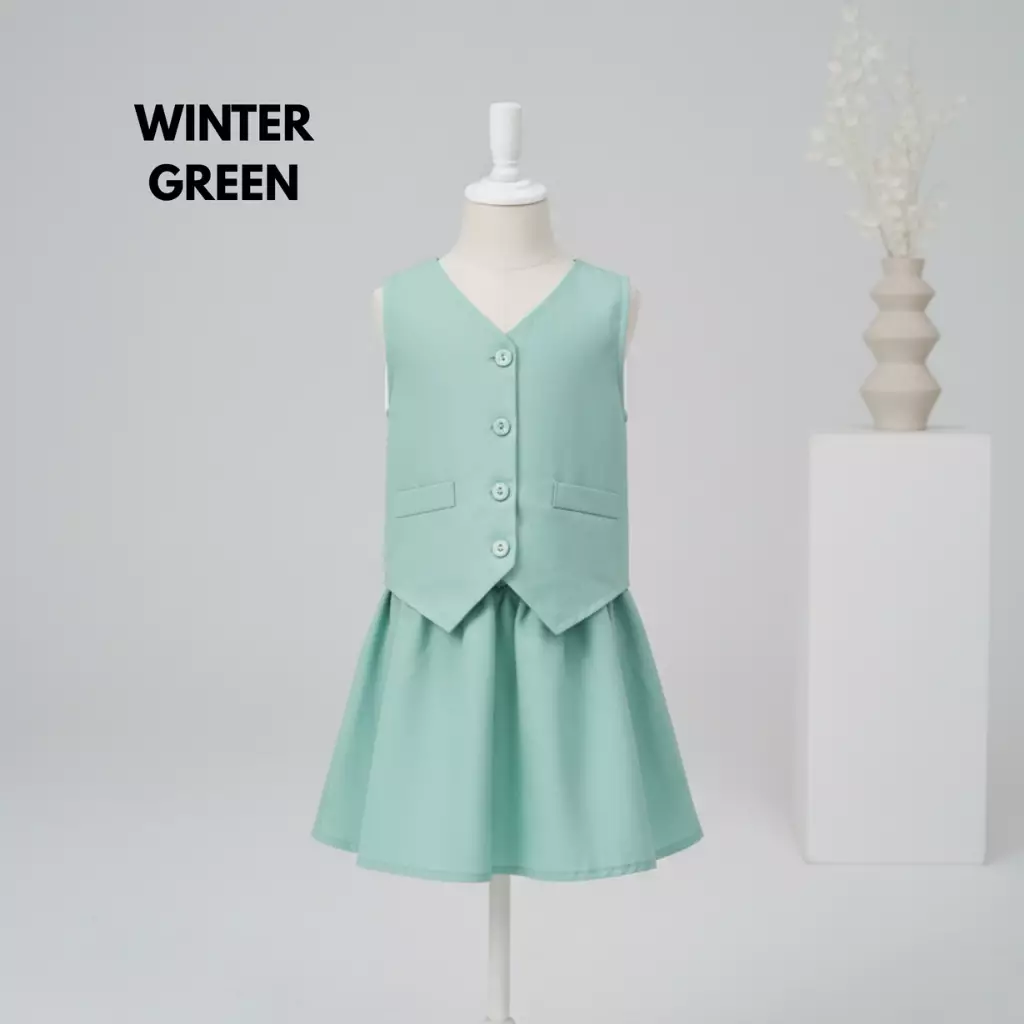 Two Mix - Yumi Setelan Anak Perempuan Lebaran - Set Baju Vest Rok Anak Cewek Korea Style 1-8 Thn 4459 WINTER GREEN