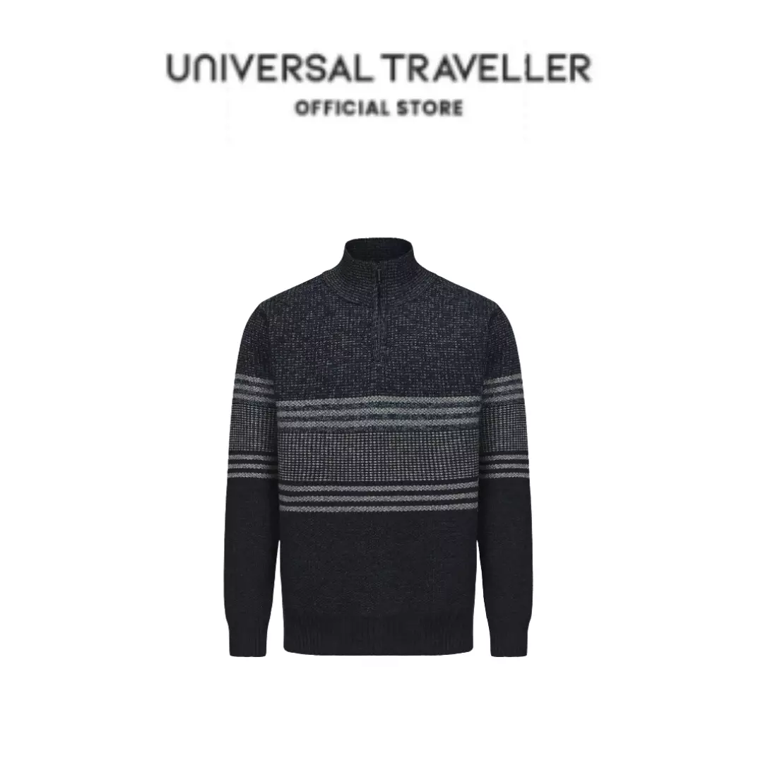 Universal Traveller HENLEY MOCK NECK STRIPED KNITTED SWEATER KS24063