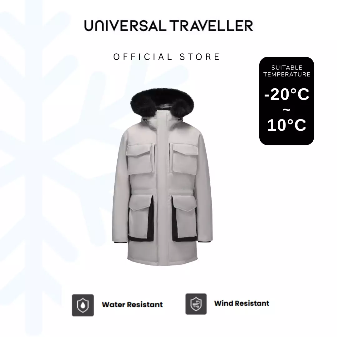 UNIVERSAL TRAVELLER MID-LENGTH DOWN JACKET WITH FUR-LINED HOOD DJ25007