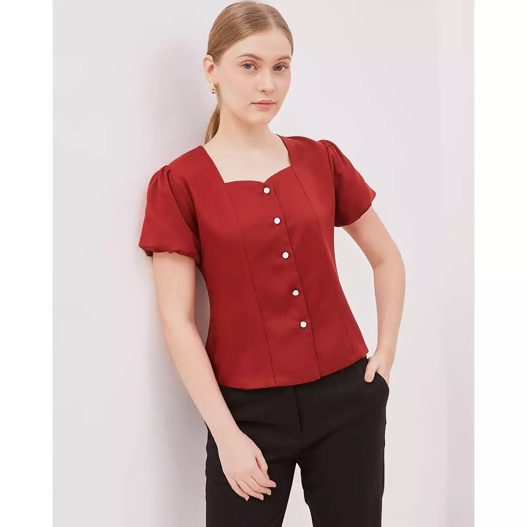 Urban Exchange Angela Maroon Blouse - Atasan Blouse Maroon Square Neck Warna Maroon