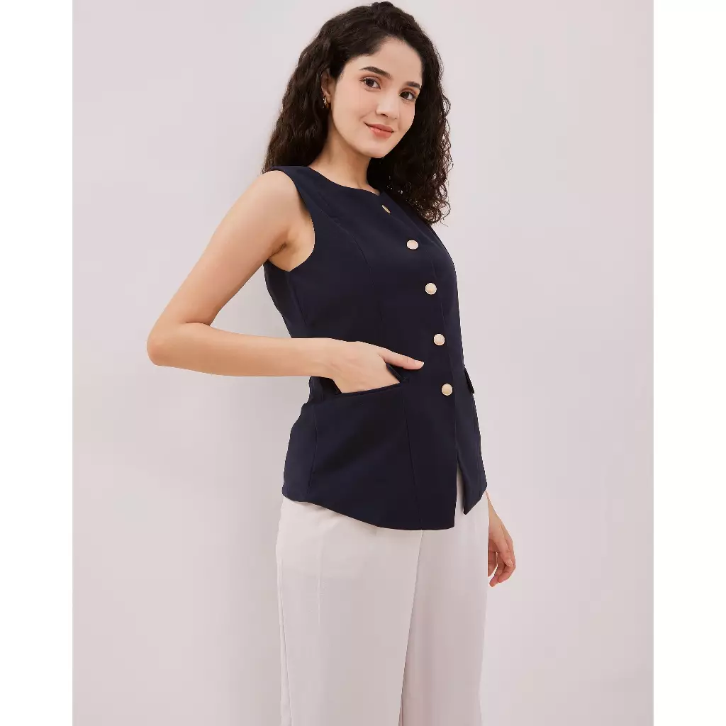 Urban Exchange Aruna Navy Vest Sleeveless - Sleeveless Outer Atasan Vest Navy Warna Navy