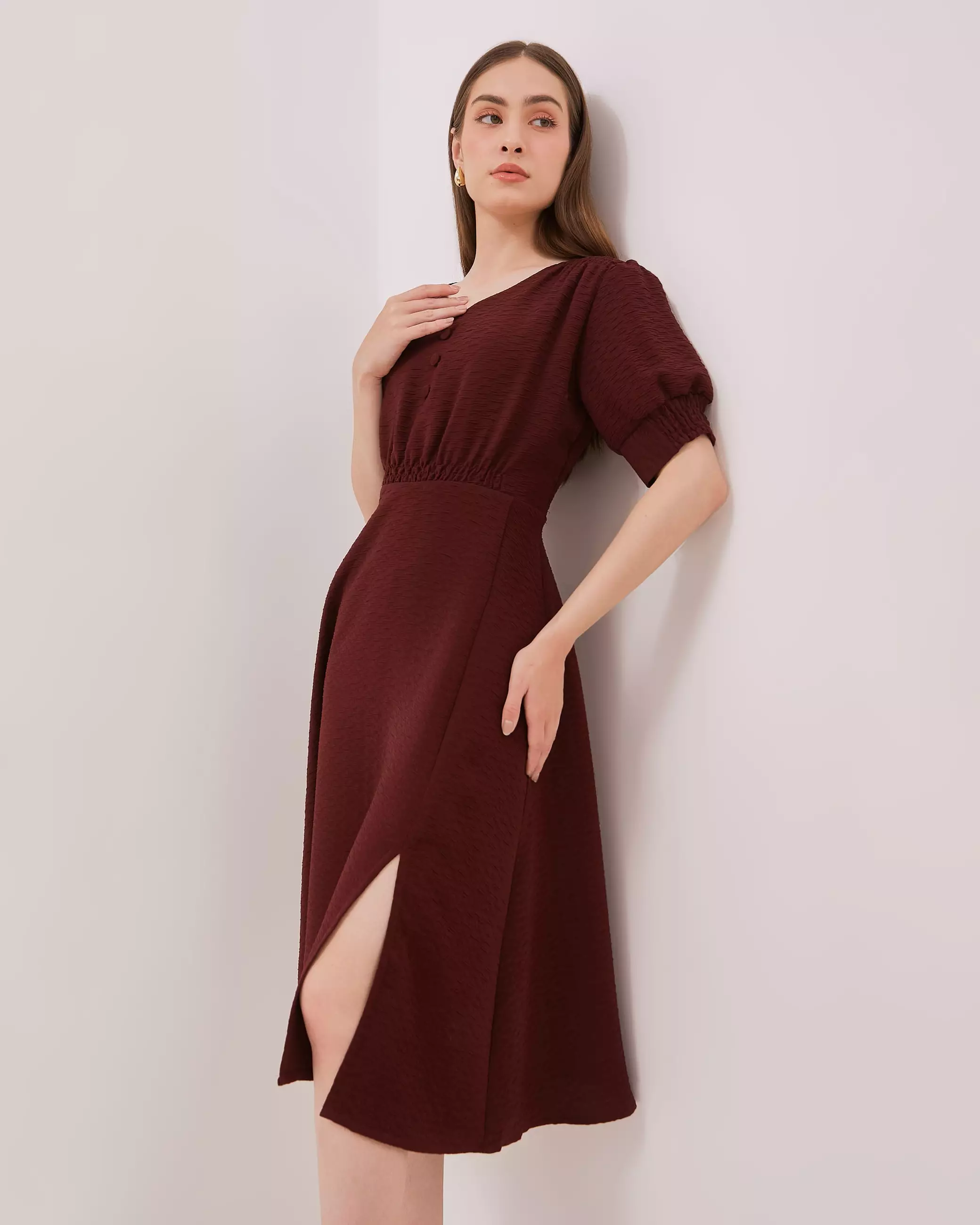 Urban Exchange Estella Midi Dress Maroon Warna Merah