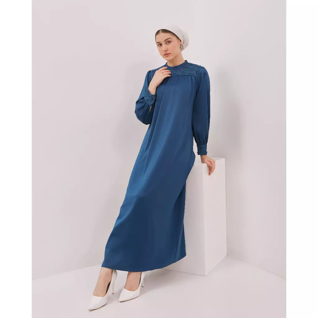 Urban Exchange Gamis Catrine Blue - Long Dress Abaya Biru Muslimah Lebaran