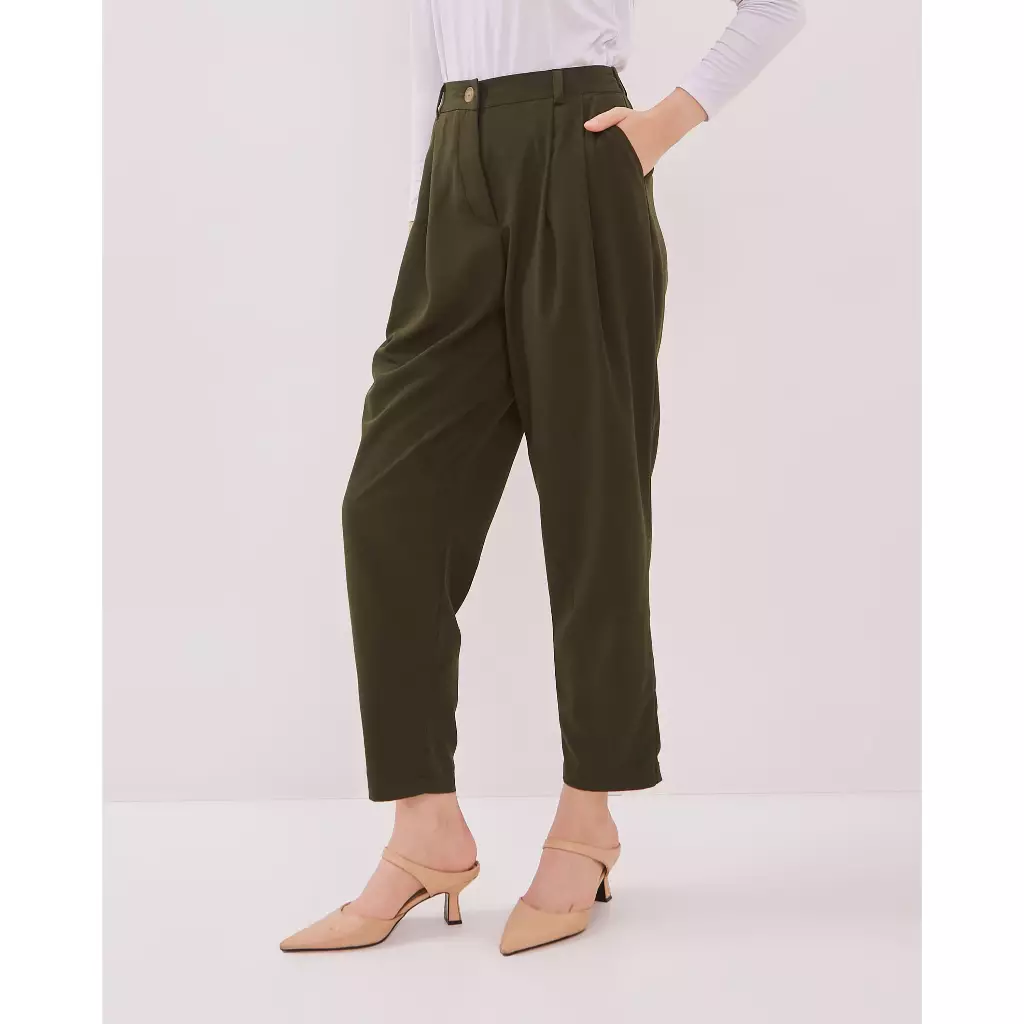 Urban Exchange Nina Pants Dark Green - Celana Kulot Panjang Olive Premium Kasual