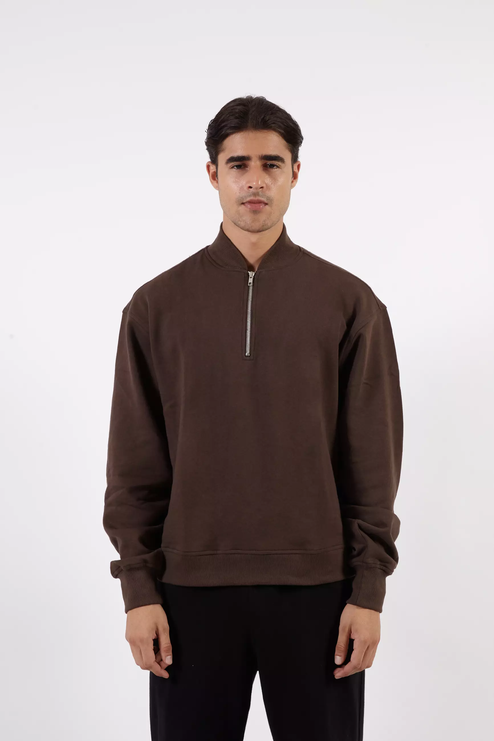 VEDECI SIGMA HALF ZIP BROWN OVERSIZED PULLOVER CROP SWEATER
