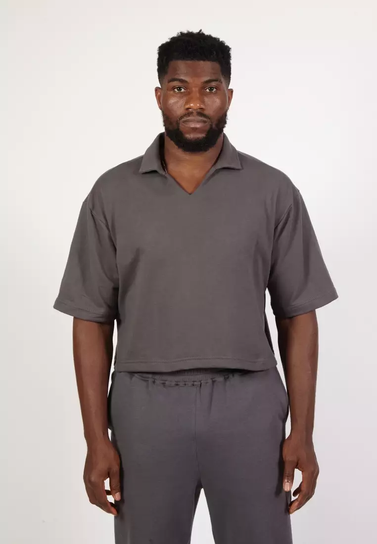 VEDECI X OCWA JD SPORTY CROP POLO SHIRT ASH GREY