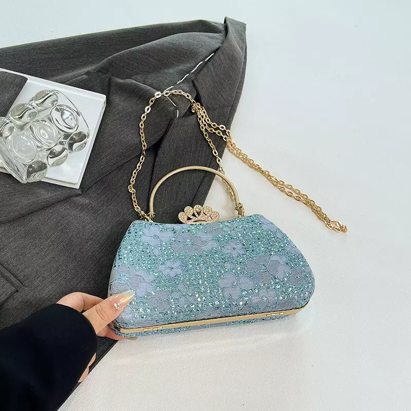 Vedlyn Levina Tas Pesta Clutch Brokat Mewah Wanita – Blue