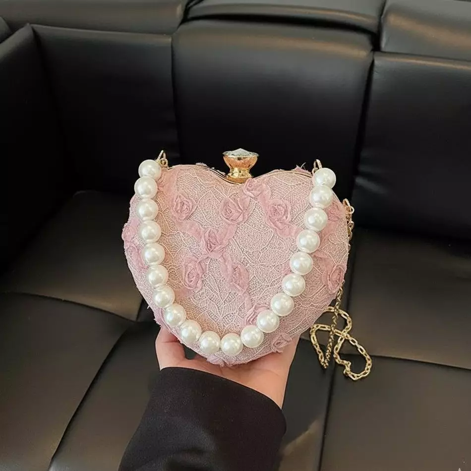 Vedlyn Lovia Tas Pesta Wanita Clutch Love Mutiara Stylish – Pink