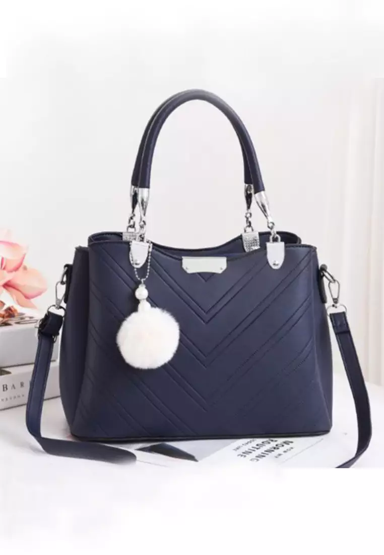 Vedlyn Rona Tas Handbag Selempang Gantungan Pom Pom - Blue