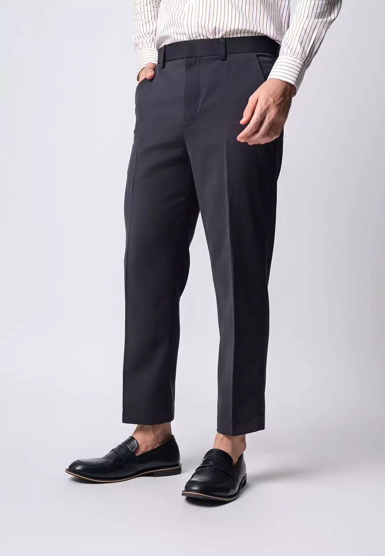 Formal Ankle Pants Straight Fit Dark Grey