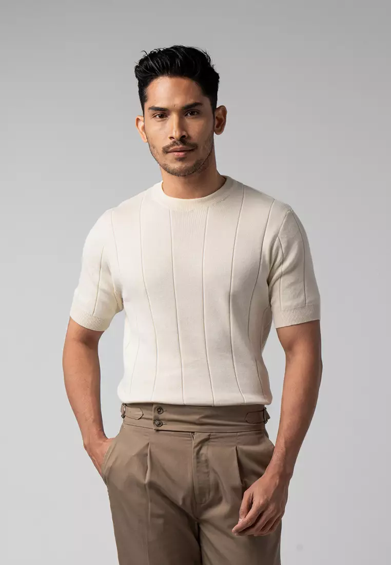 Mens Striped Knitted T-Shirt Cotton Off White SS