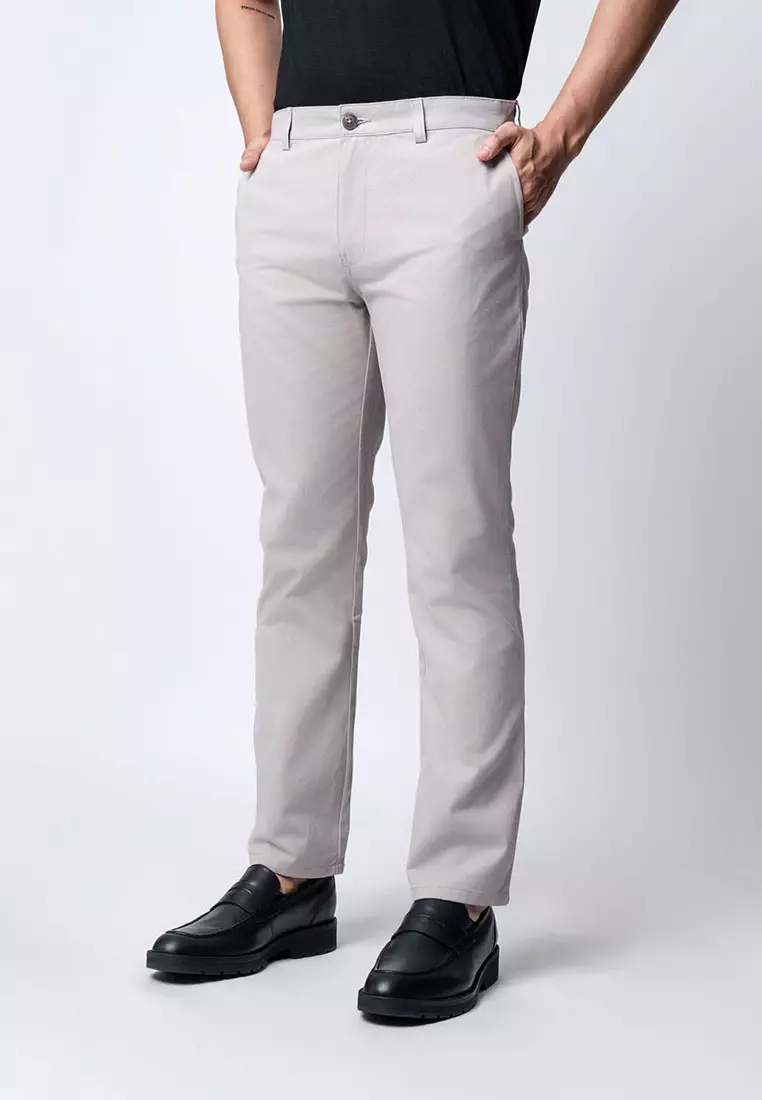 Regular Straight Fit Chino Cotton Twill Light Grey