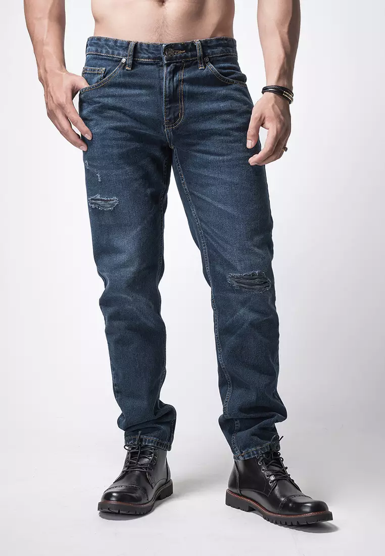 Tapered Fit Jeans Premium Dark Blue Wash Ripped