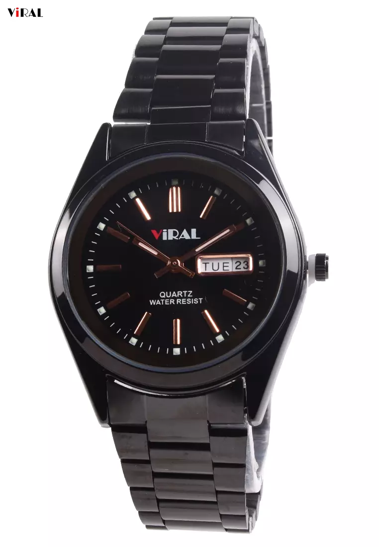 Viral Jam Tangan Analog Pria - Black Case Black Dial - VR023
