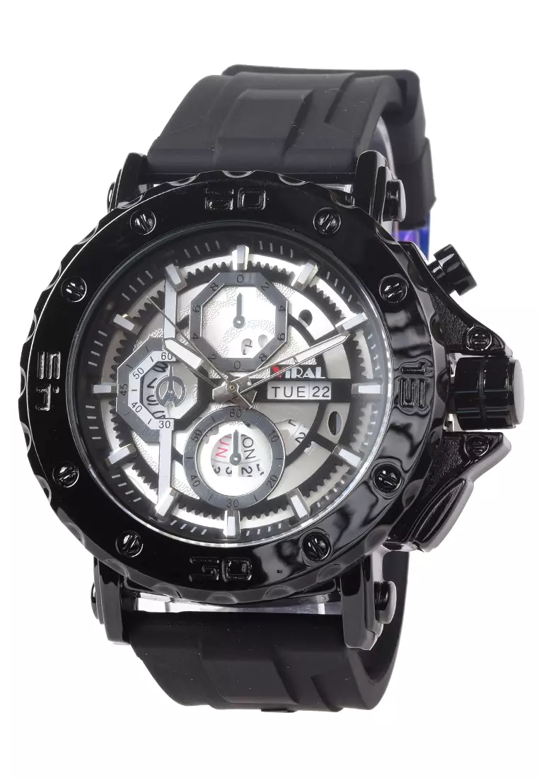 ViralViral Jam Tangan Analog Pria - Black Case Black Rubber Strap - VR013250000.00200000.00