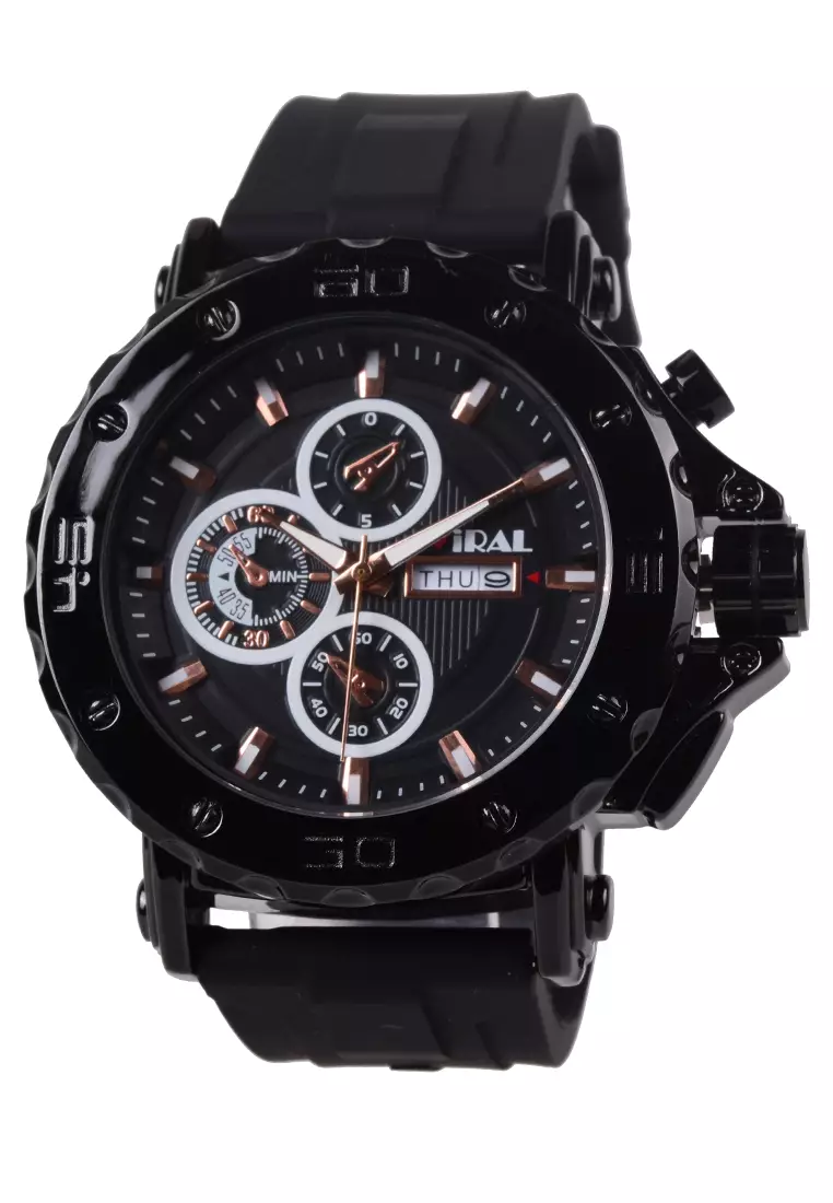 ViralViral Jam Tangan Analog Pria - Black Case Black Rubber Strap - VR033250000.00200000.00