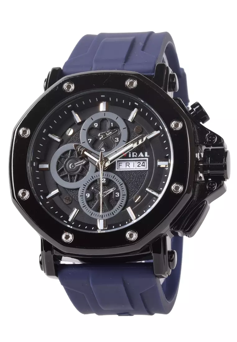 ViralViral Jam Tangan Analog Pria - Black Case Blue Rubber Strap - VR011250000.00200000.00