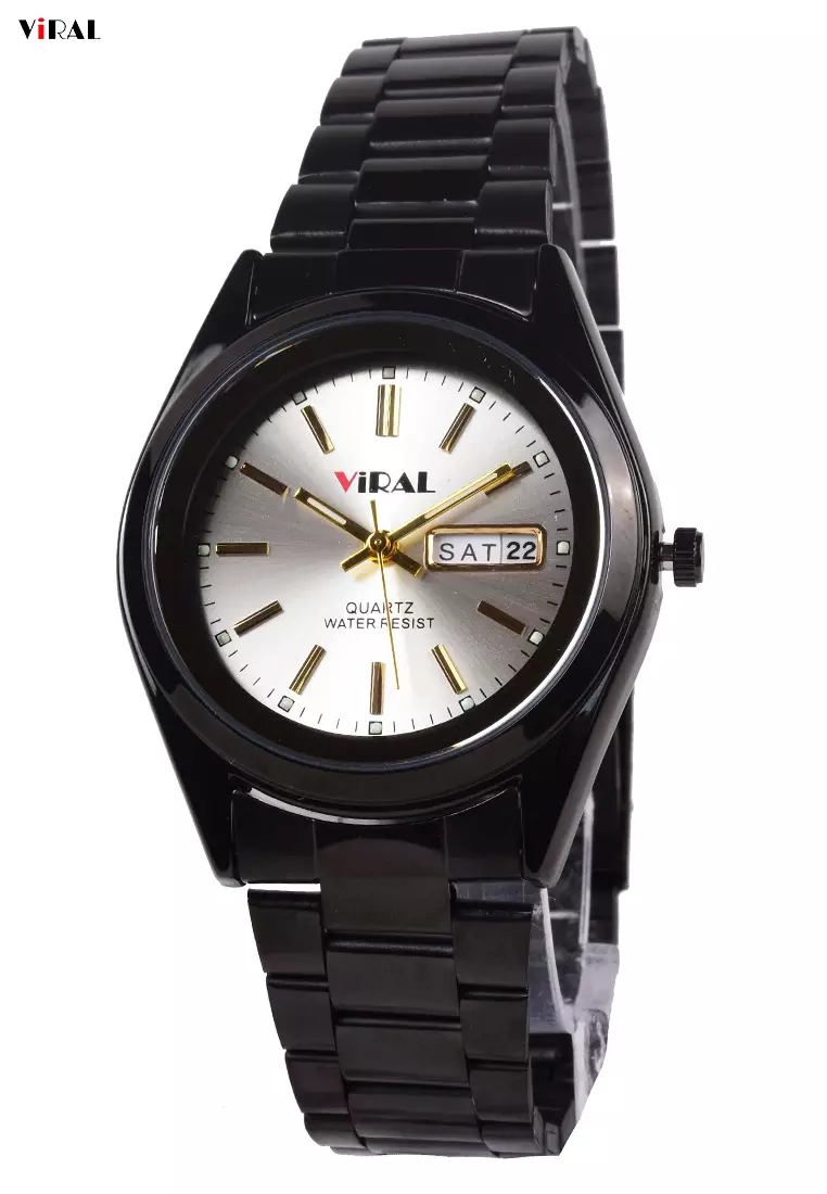 Viral Jam Tangan Analog Pria - Black Case Silver Dial - VR024