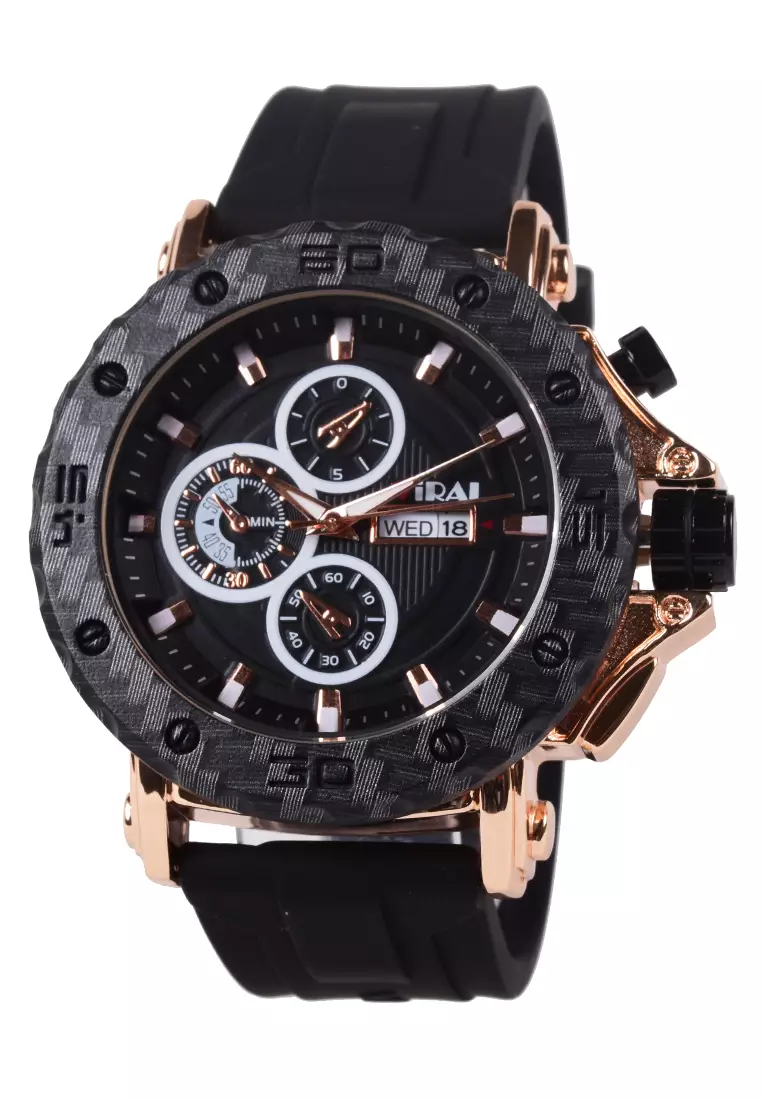 Viral Jam Tangan Analog Pria - Rosegold Case Black Rubber Strap - VR026