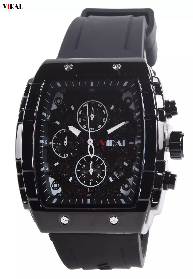 Viral Jam Tangan Chronograph Pria - Black Case Black Rubber Strap - VR018