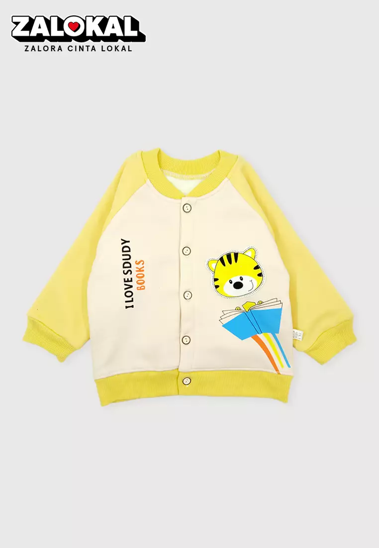 WAKAKIDSJaket Bayi Baseball Fleece Atasan Sweater Kancing Anak Import Tebal dan Lembut Motif Love Book Cat 4407 Kuning139800.0072900.00