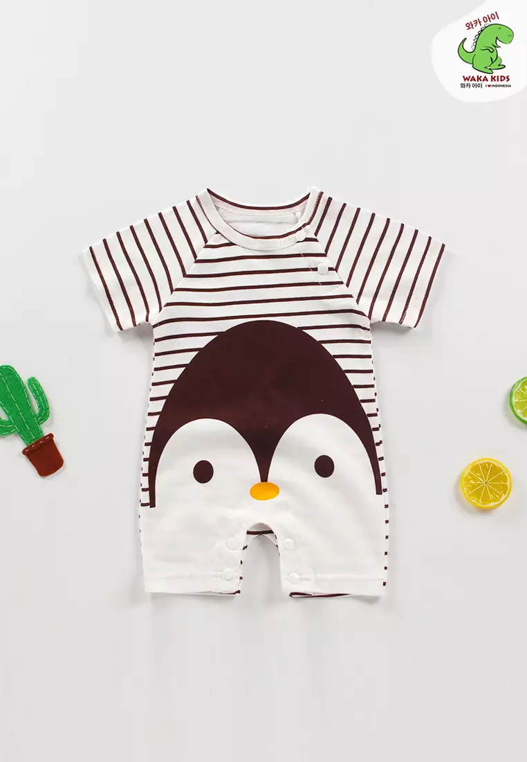 WAKAKIDSJumpsuit Bayi Jumper Pendek Anak Laki Laki Romper Baju Kodok Motif Lucu Pinguin Salur Import Venrz 4449101900.0053900.00