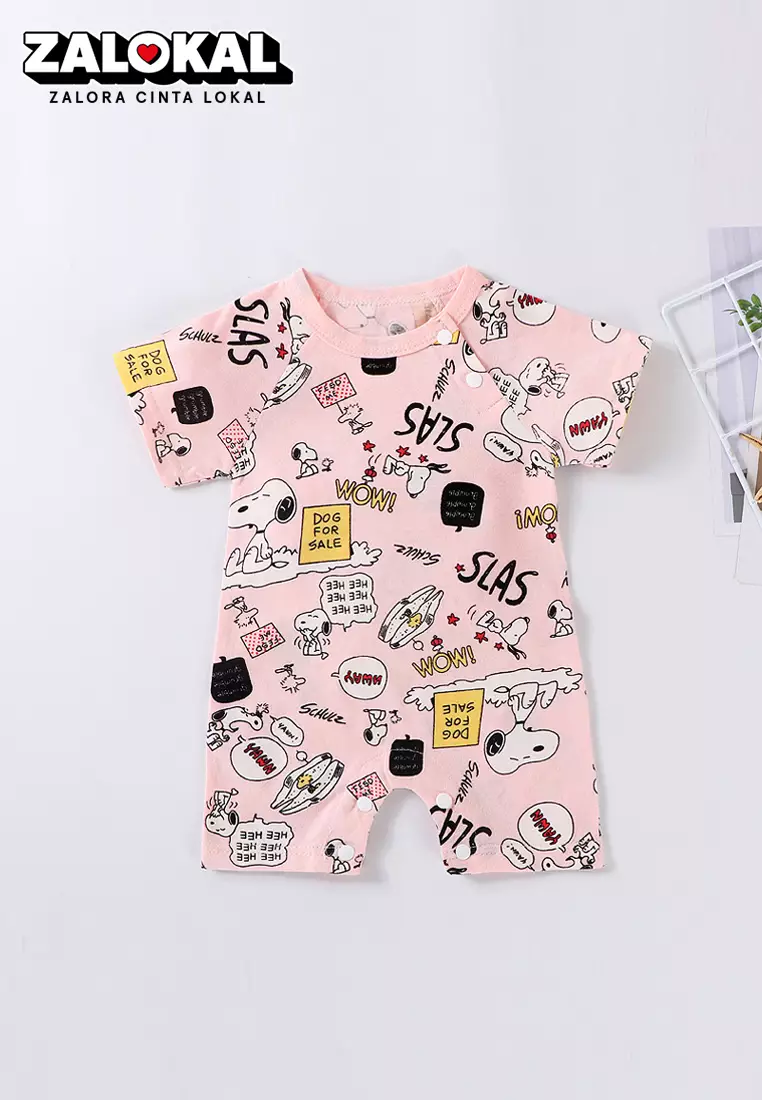 WAKAKIDSJumpsuit Bayi Jumper Pendek Anak Perempuan Romper Baju Kodok Motif Lucu Snoopy Pink Import Venrz 4274101900.0053900.00