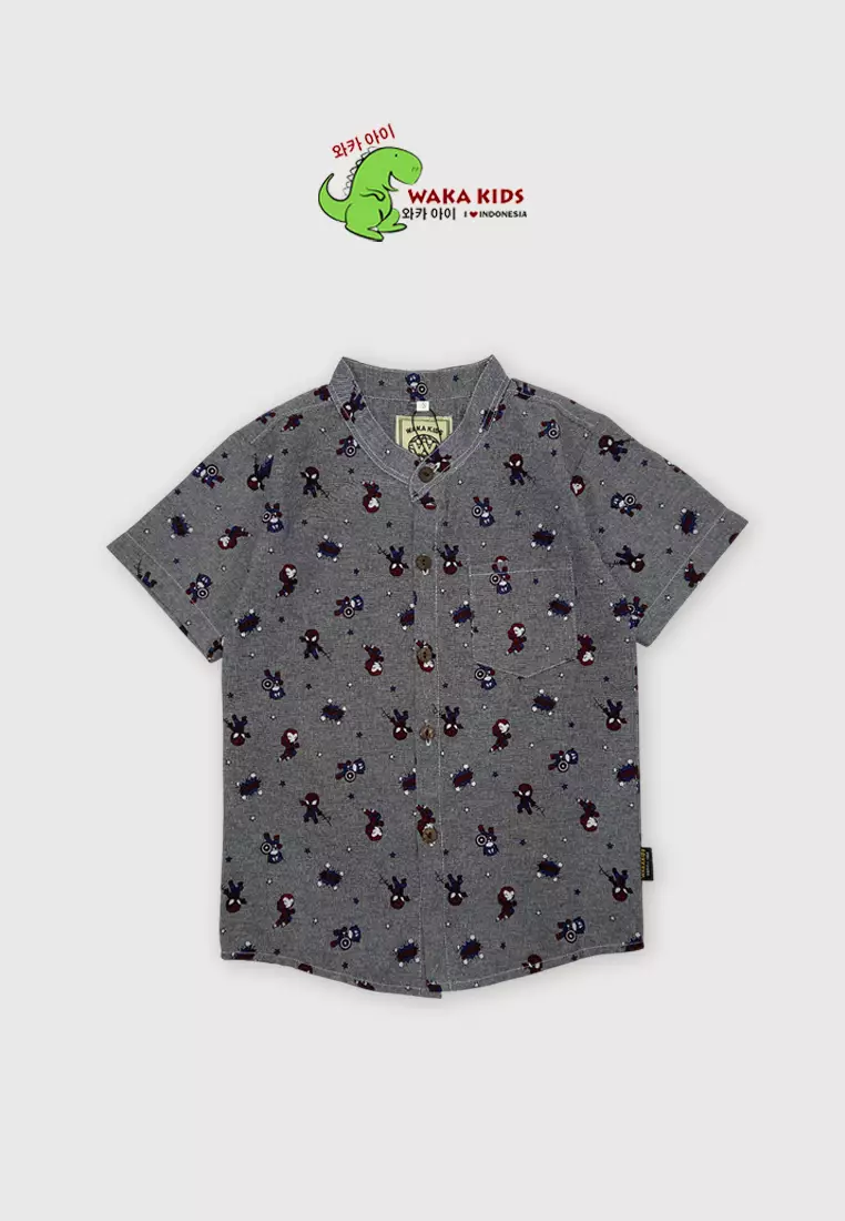 WAKAKIDSKemeja Anak Laki Laki Lengan Pendek Katun Kerah Shanghai Mandarin Motif Superhero Collar Shirt 4439 Vensk Abu Tua287800.00148900.00