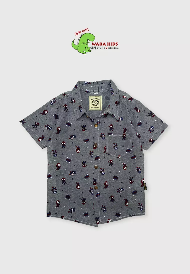 WAKAKIDSKemeja Anak Laki Laki Lengan Pendek Katun Motif Superhero Collar Shirt 4438 Vensk Abu Tua287800.00149800.00