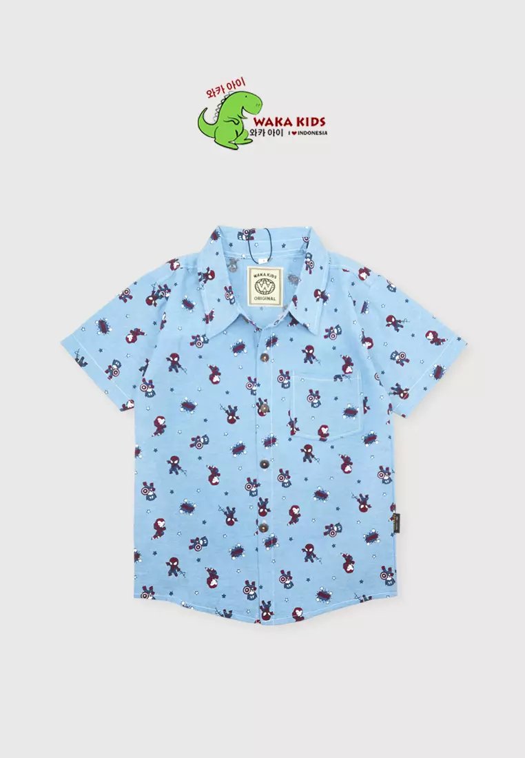 WAKAKIDSKemeja Anak Laki Laki Lengan Pendek Katun Motif Superhero Collar Shirt 4438 Vensk Biru287800.00149800.00