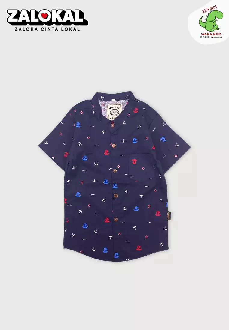 WAKAKIDSKemeja Anak Laki Laki Usia 1 Tahun Hingga 6 Tahun Atasan Baju Kerah Shanghai Mandarin Collar Shirt Motif Jangkar Anchor Pattern 4322 Vensk284000.0091400.00