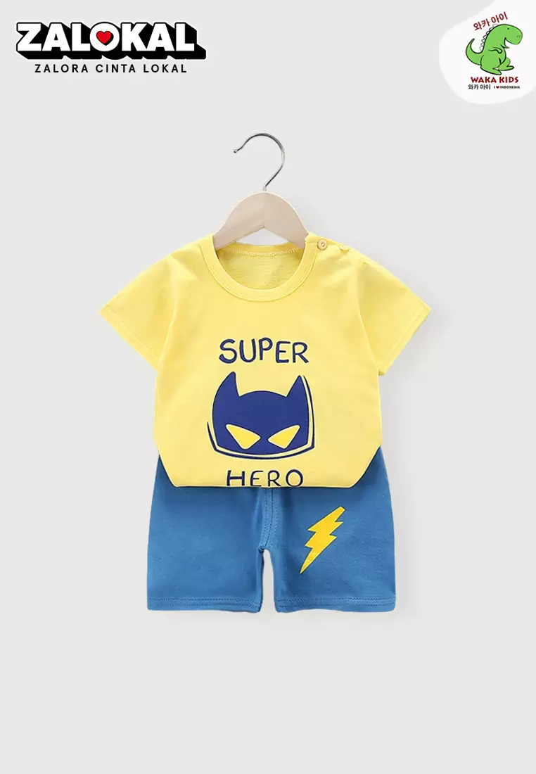 WAKAKIDSSetelan Bayi Baju Anak Laki Laki Oblong Lengan Pendek Set Celana Kaos Motif Lucu Super Hero Import Venrz 443298900.0049900.00