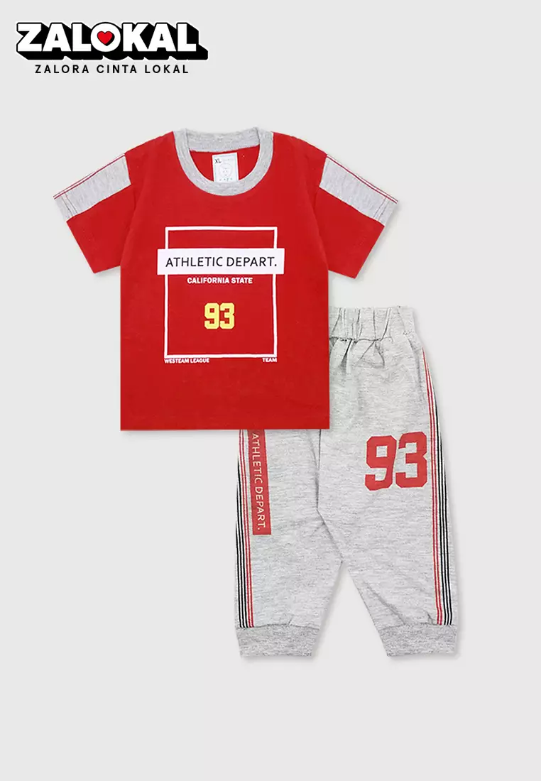 WAKAKIDSSetelan Bayi Laki Laki Baju Lengan Pendek Anak Usia 12 Bulan Hingga 18 Bulan Set Celana Jogger Motif California State 3051 Merah213900.0064300.00