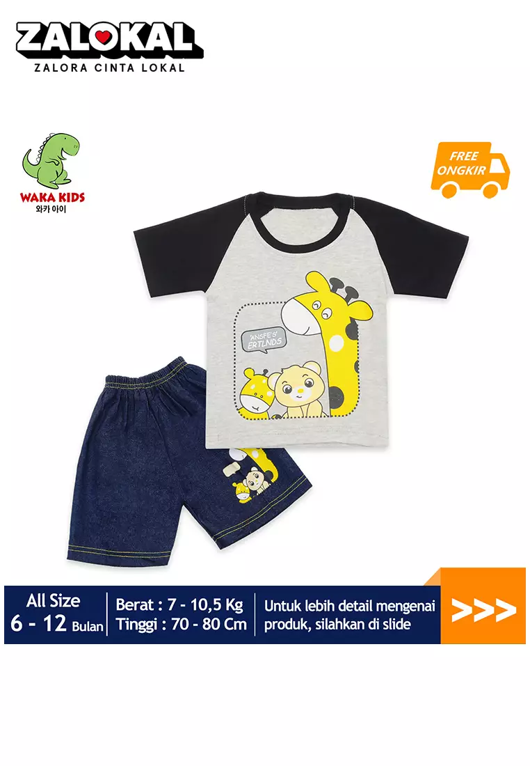 WAKAKIDSSkabe Pakaian Bayi Anak Laki Laki Baju Atasan Lengan Pendek Motif Giraffe Setelan Celana Jeans All Size Warna Tua Usia 6 Bulan Hingga 12 Bulan 3221181900.0047100.00