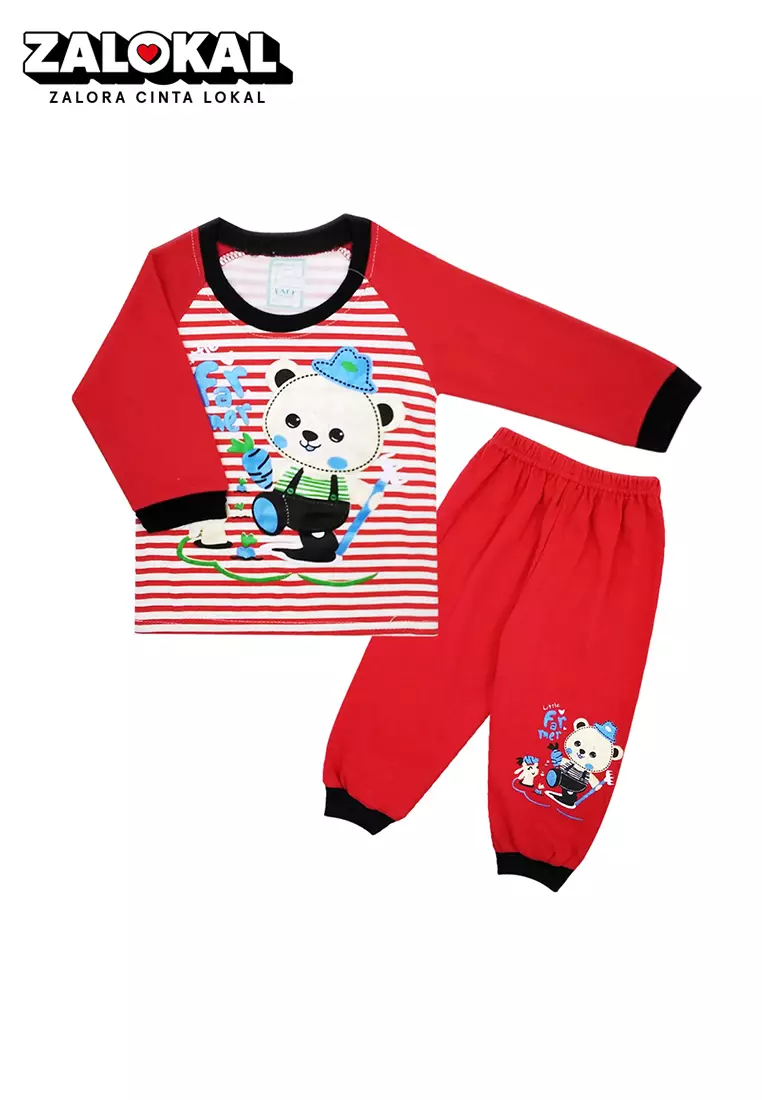 WAKAKIDSSkabe Pakaian Bayi Anak Laki Laki Baju Atasan Oblong Lengan Panjang Motif Bear Salur Setelan Celana Kaos All Size Warna Tua Usia 6 Bulan Hingga 12 Bulan 2426 Merah211900.0072500.00