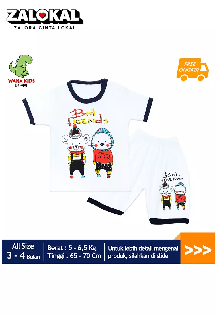 WAKAKIDSSkabe Pakaian Bayi Anak Laki Laki Baju Atasan Oblong Lengan Pendek Motif Best Friends Setelan Celana Kaos All Size Baby Putih Usia 0 Sampai 6 Bulan 3354 Everyday Waka Kids Wakakids96900.0049000.00