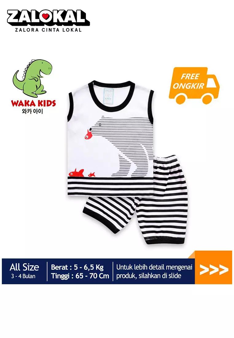 WAKAKIDSSkabe Pakaian Bayi Anak Laki Laki Baju Singlet Motif Bear Salur Setelan Celana Kaos Full Print Baby Putih All Size Untuk Usia 0 Sampai 6 Bulan 3226 Everyday Waka Kids Wakakids96900.0050500.00